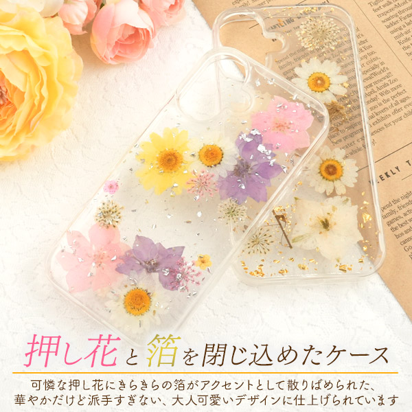 | 注意事項 | ★本物の花を使用しておりますので、画像とは形・色・配置が異なる場合があります。 ※画像の色調はご使用のモニターの機種や設定により実際の商品と異なる場合があります。 ※ライセンス商品ではありません。 ※スマートフォン等、撮影用小物は付属しません。 ※本製品は強い衝撃からスマートフォンを保護することは出来ません。 ※広角モードで撮影すると、ケースが映り込む場合があります。 |