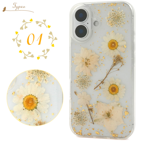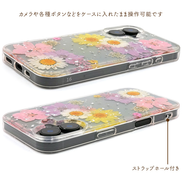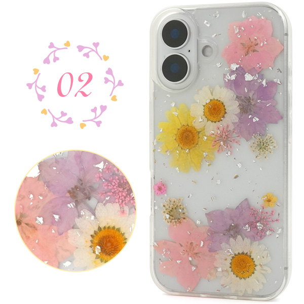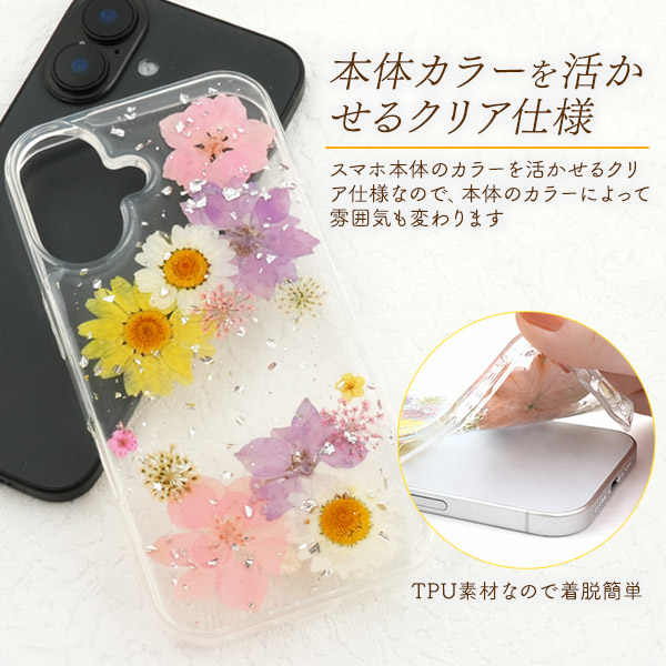 <スマホケース>iPhone 16用押し花クリアケース