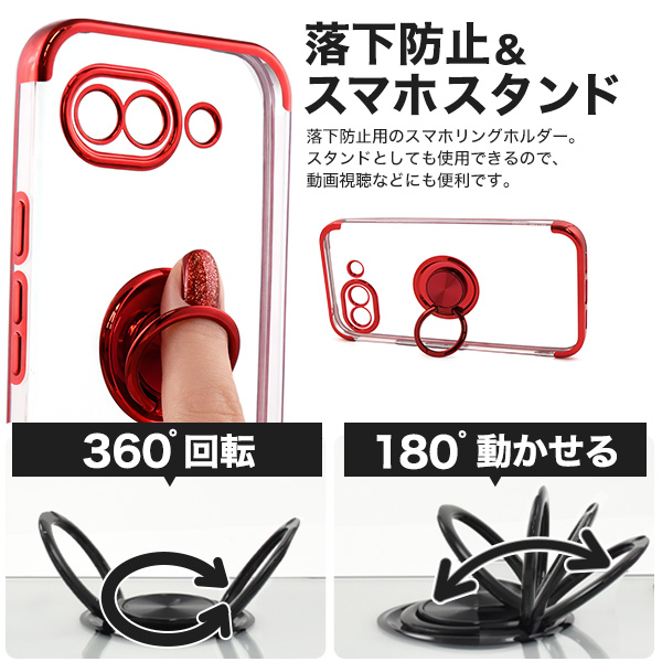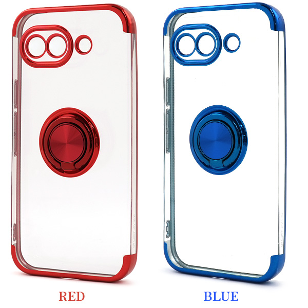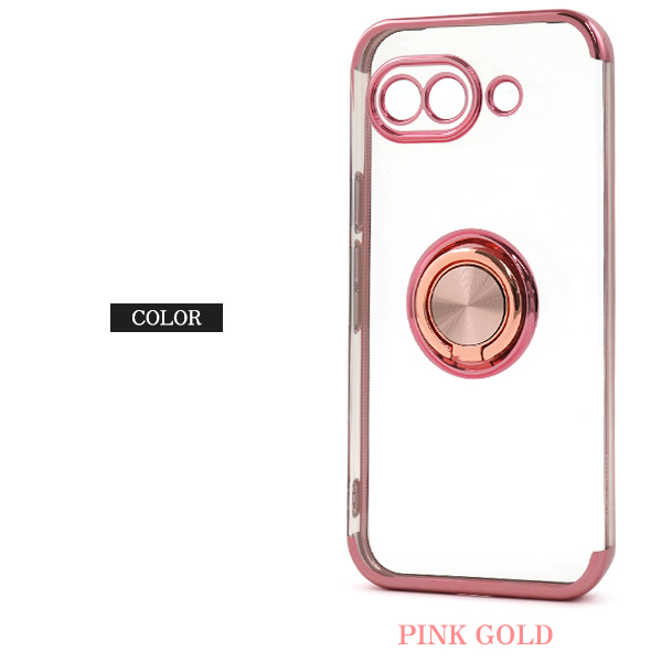 Google Pixel 10a用スマホリング付きメタルカラーバンパーソフトクリアケース