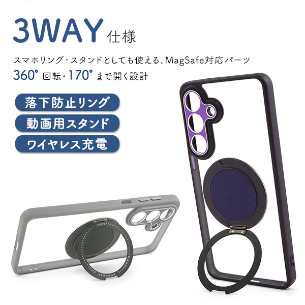 また、スマホリングやスタンドとしても使える3WAY仕様!